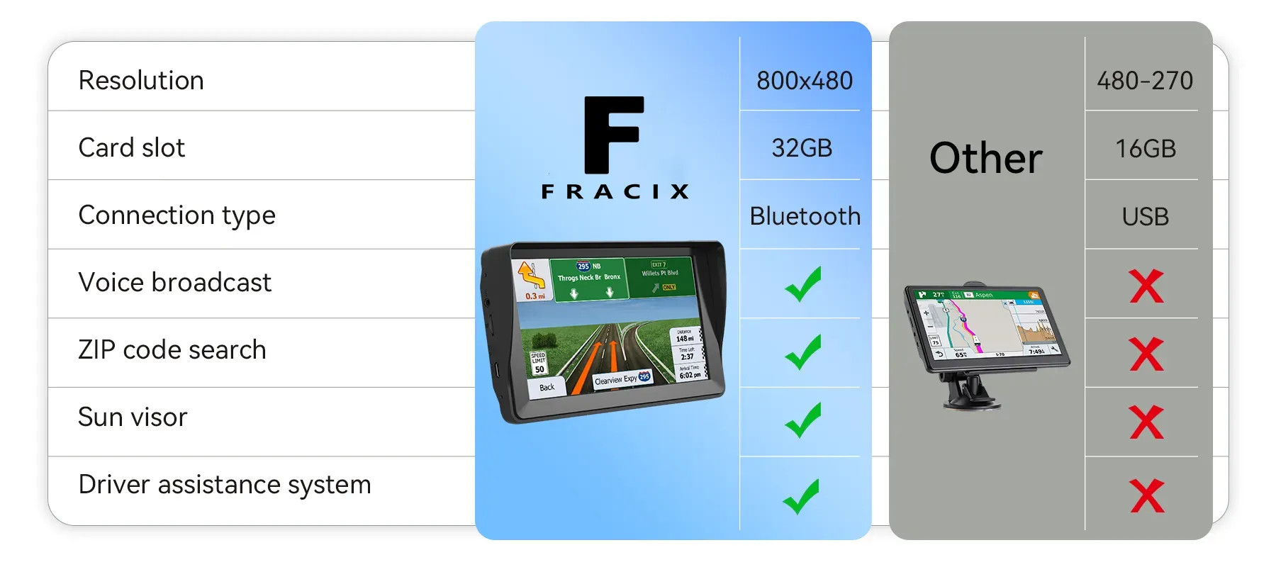 Fracix Sat Nav- Is your all-in-one GPS device, ensuring a safe, reliable, and worry-free drive with its seamless connectivity, accurate GPS, and lifetime free map updates.